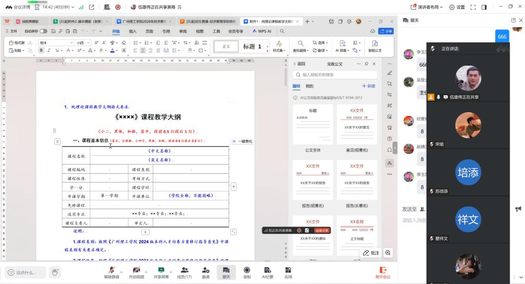 互动研讨阶段,与会教师围绕大纲修订中的实际问题展开热烈交流。针对“专升本与本科课程大纲的差异化设计” 等疑问,伍雄伟主任逐一回应,并引导教师结合自身教学经验分享思路。老师们纷纷表示,此次研讨内容详实、针对性强,解决了大纲修订中的诸多困惑,对后续工作具有明确的指导意义。财务管理系督导根据此前教学大纲检查结果,也提出了具体的修改意见及注意事项。