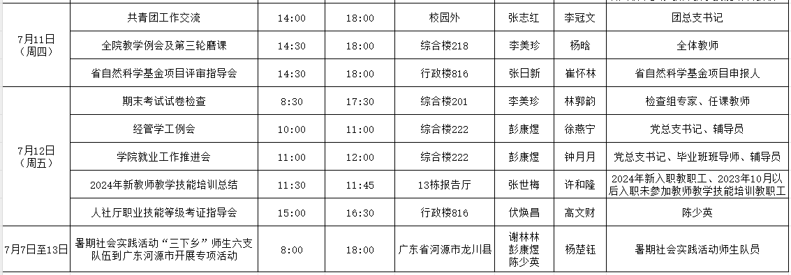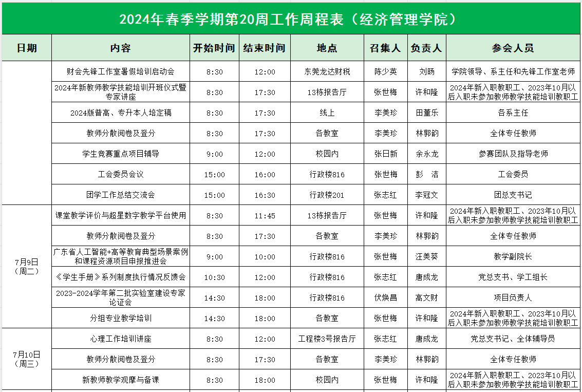 suncitygroup太阳集团2024年春季学期第20周工作周程表