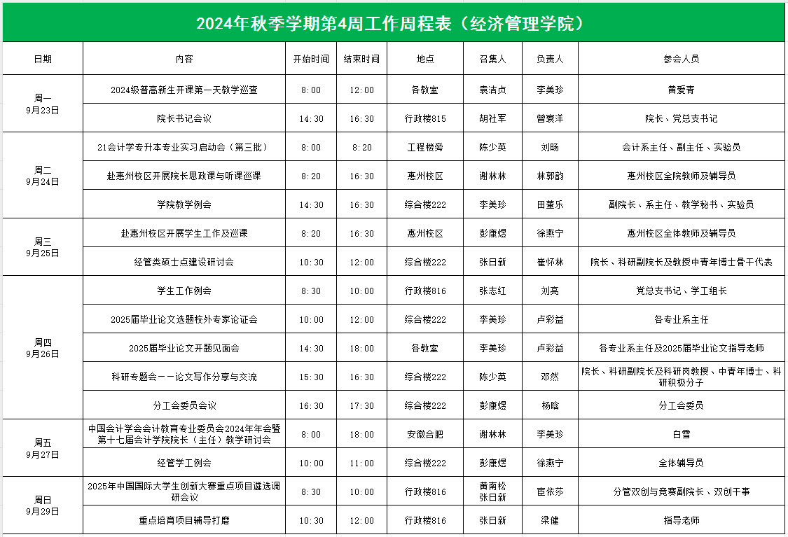suncitygroup太阳集团2024年秋季学期第4周工作周程表