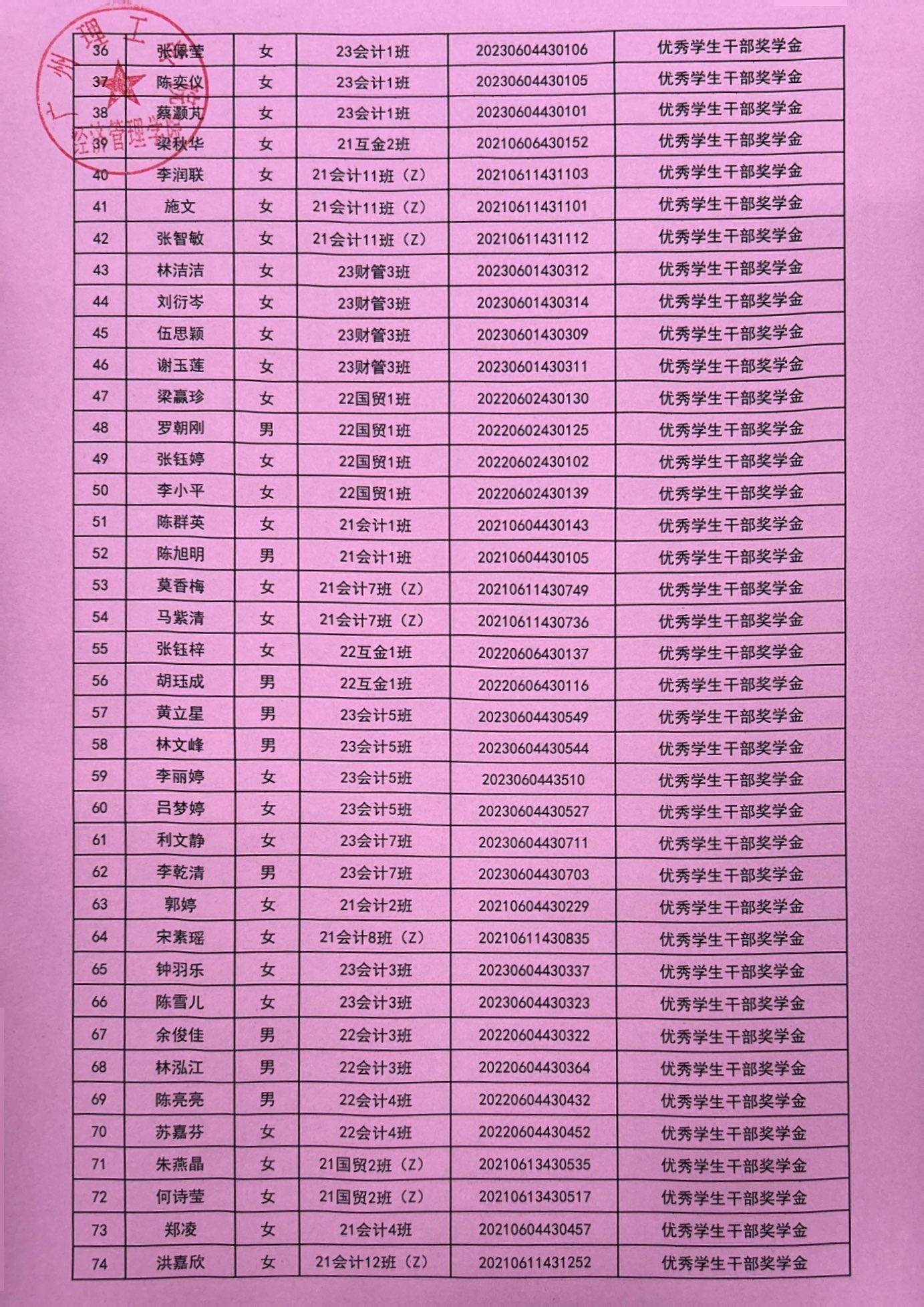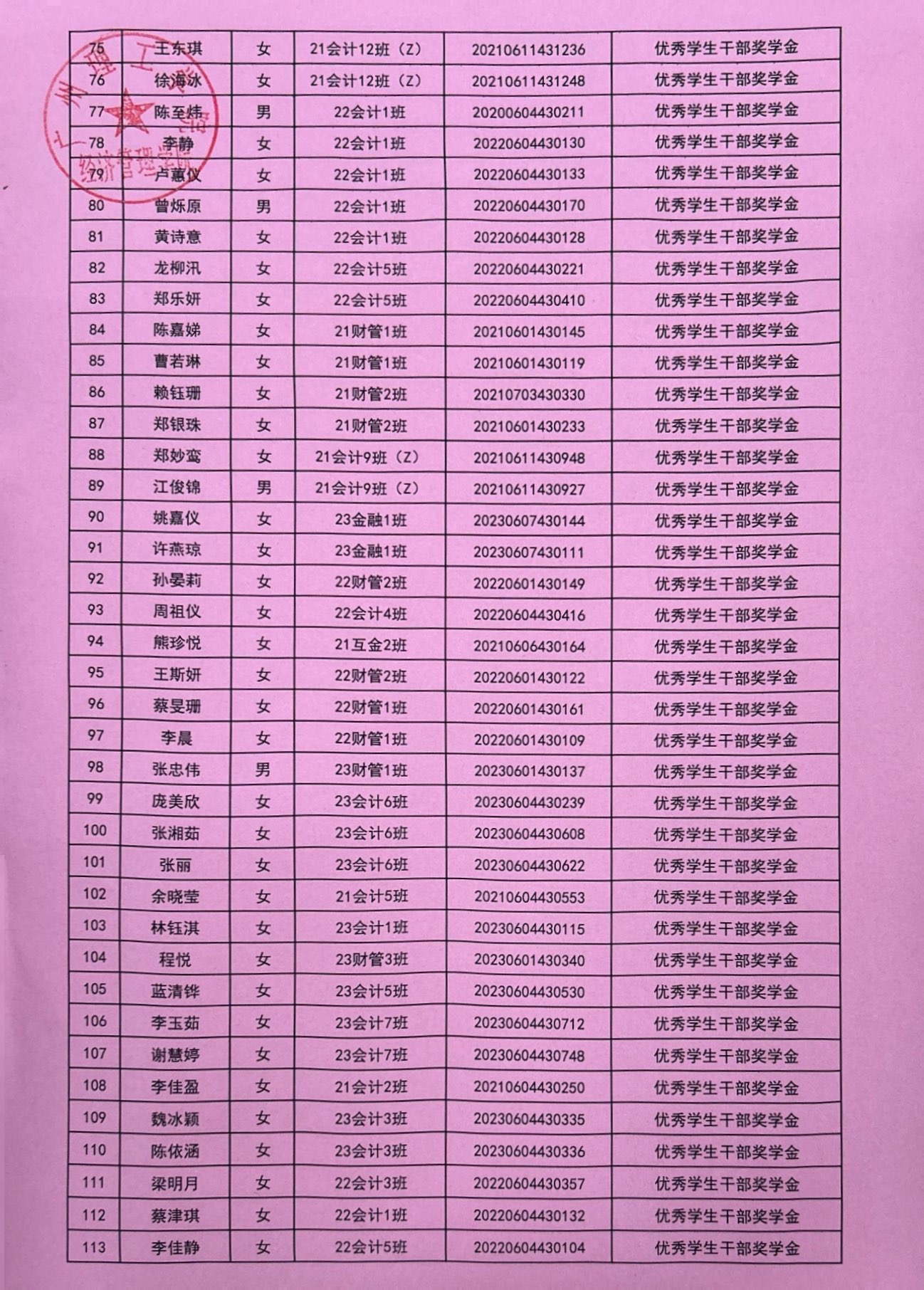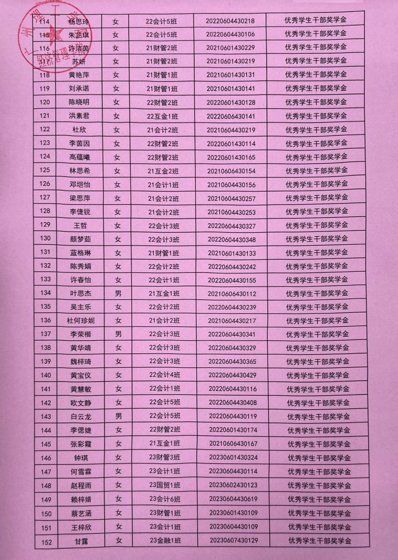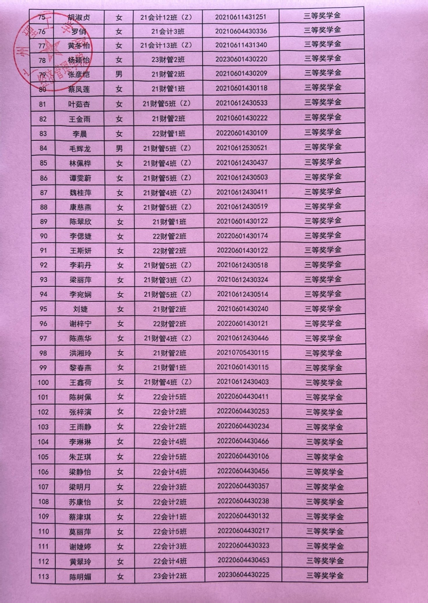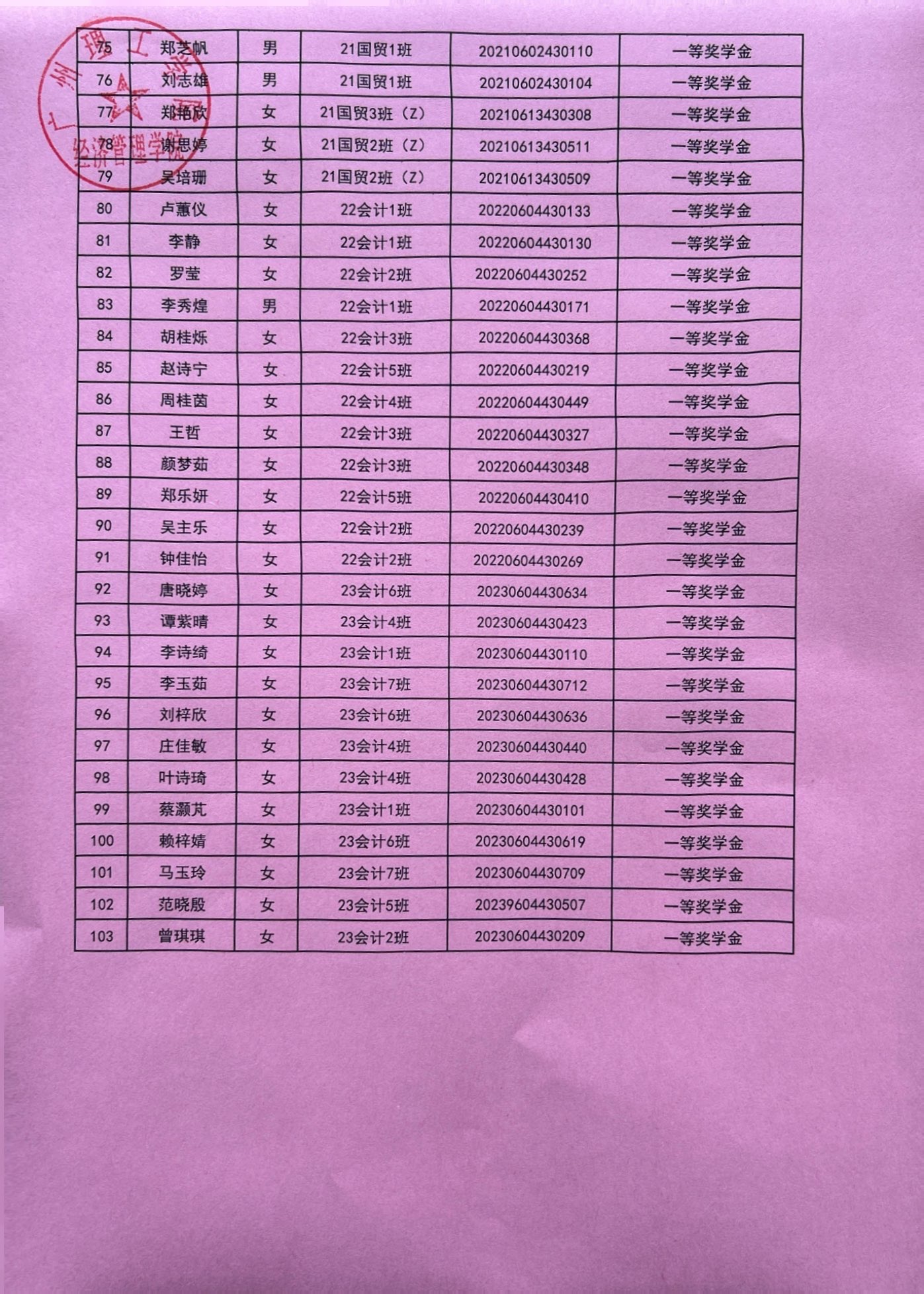 根据《2023-2024学年奖学金评比工作方案》(广州理工学函〔2024〕148号),suncitygroup太阳集团本着公平、公正、公开的原则对奖学金申请材料进行严格评选,现对学院2023-2024学年奖学金拟获奖名单予以公示。公示时间从2024年9月27日至2024年9月29日。如对公示结果有异议,请于公示期间通过以下受理途径实名反馈。反映情况时需提供真实具体的材料,并签署姓名和联系电话;不提供具体事实材料或不签署真实姓名和联系方式的,对所反映情况将不予受理。