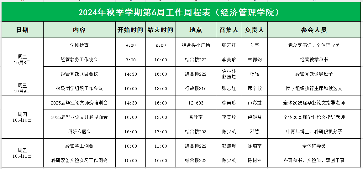 suncitygroup太阳集团2024年秋季学期第6周工作周程表
