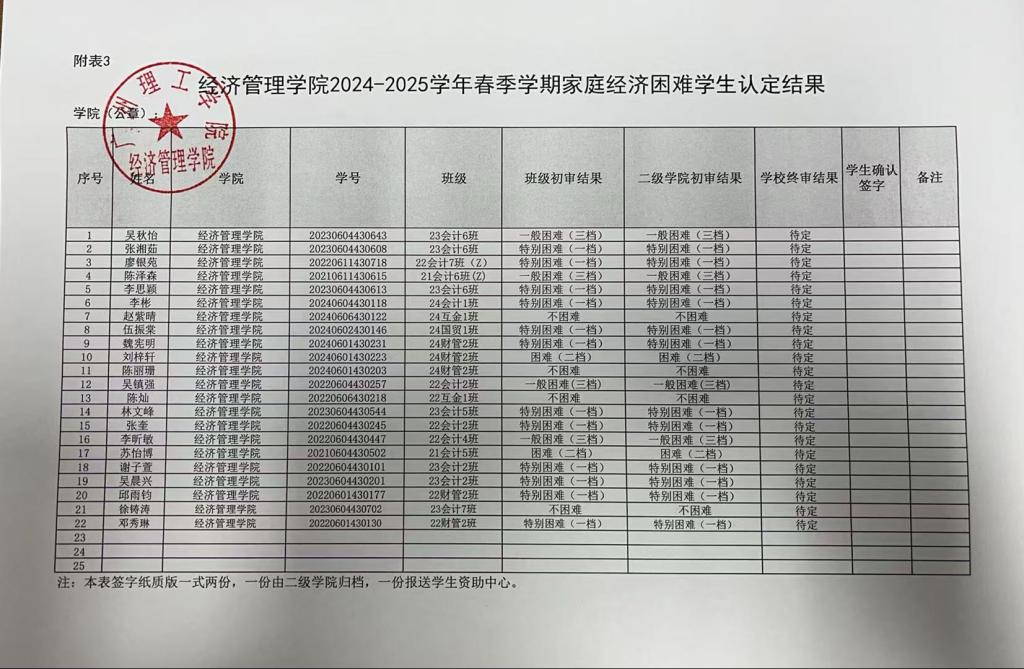 (三)公示结束后,学院将报送学生资助中心再次审核确认,认定等级以学校结果为准。