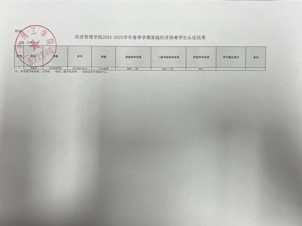 (三)公示结束后,学院将报送学生资助中心再次审核确认,认定等级以学校结果为准。