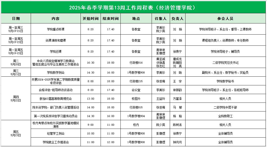 suncitygroup太阳集团2025年春季学期第13周工作周程表