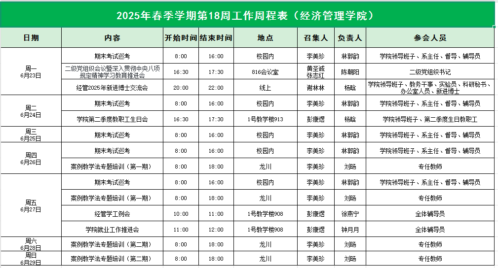 suncitygroup太阳集团2025年春季学期第18周工作周程表