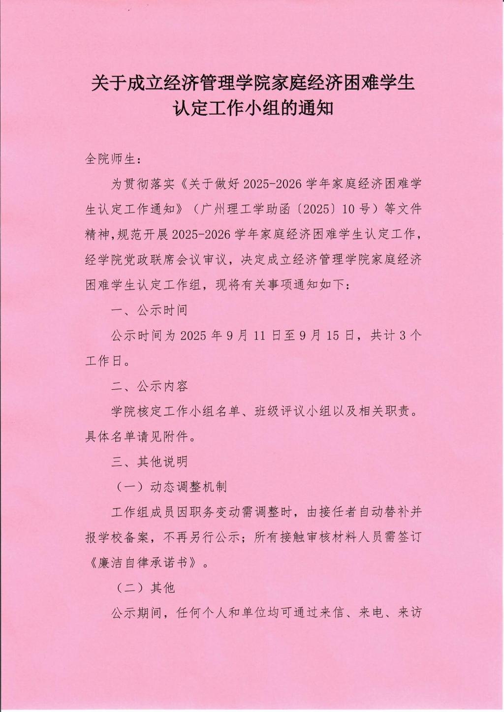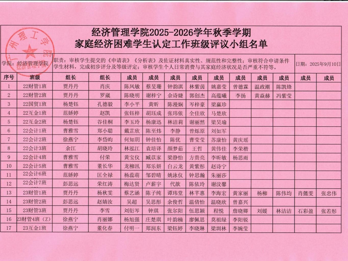 为贯彻落实《关于做好2025-2026学年家庭经济困难学生认定工作通知》(广州理工学助函〔2025〕10号)等文件精神,规范开展2025-2026学年家庭经济困难学生认定工作,经学院党政联席会议审议,决定成立suncitygroup太阳集团家庭经济困难学生认定工作组。