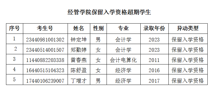 超期保留入学资格学生:保留入学资格期满,在学校规定期限内未提出入学申请或申请入学经审查不合格的新生。
