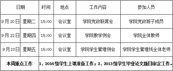 财经学院第四周周程表