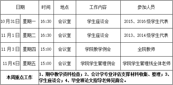 财经学院第十周周程表