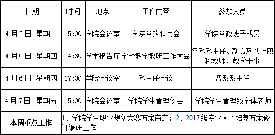 财经学院第七周周程表