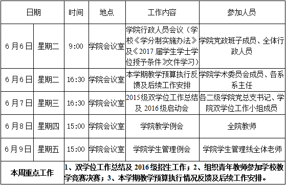 财经学院第十六周周程表