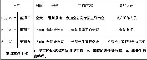 财经学院第十九周周程表