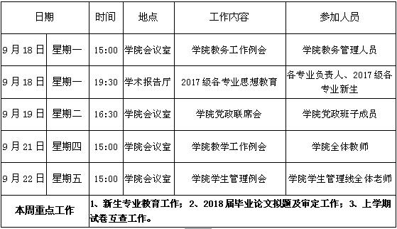 财经学院第三周周程表(2017-2018)