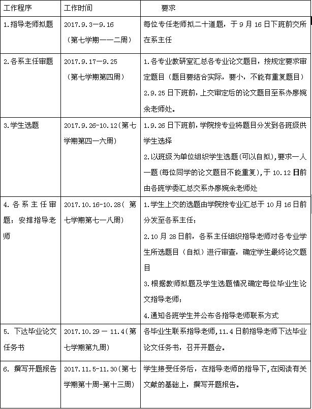 根据2014级各专业人才培养方案,现就我院2018届本科毕业生毕业论文工作进度安排通知如下: