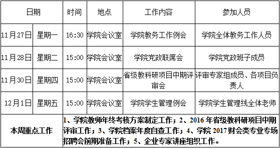 财经学院第十三周周程表