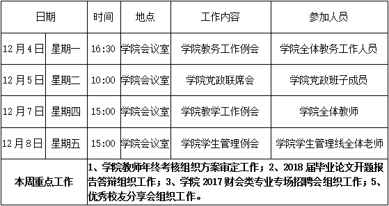 财经学院第十四周周程表