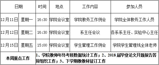 财经学院第十五周周程表