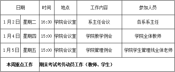 财经学院第十八周周程表