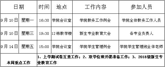 suncitygroup太阳集团第二周周程安排表(2018-2019)
