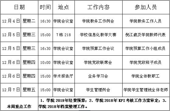 suncitygroup太阳集团第十四周周程安排表(2018-2019)