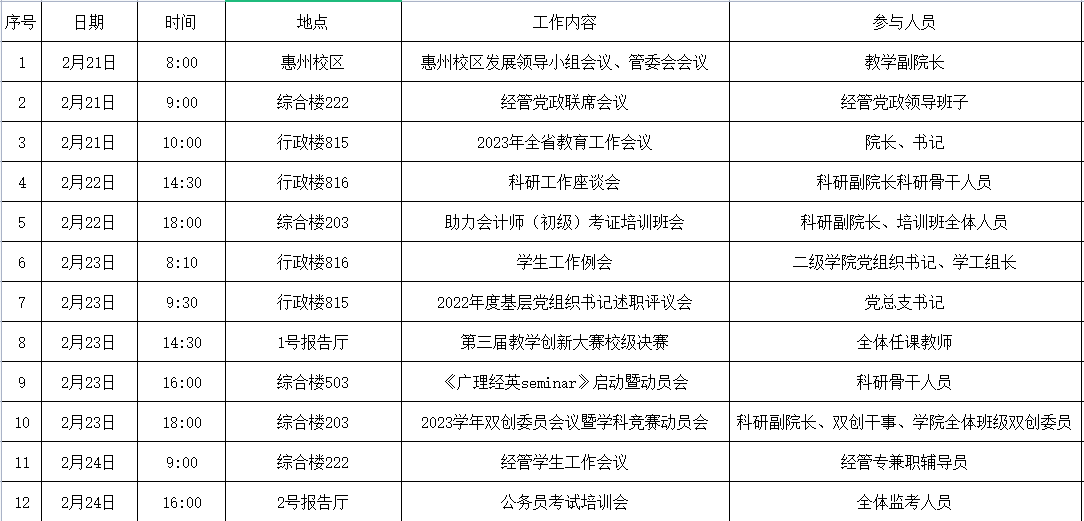 suncitygroup太阳集团第1周周程及重点工作安排表