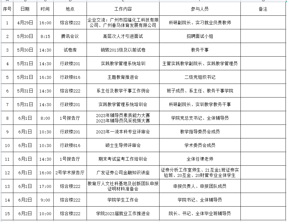 suncitygroup太阳集团第15周周程及重点工作安排表
