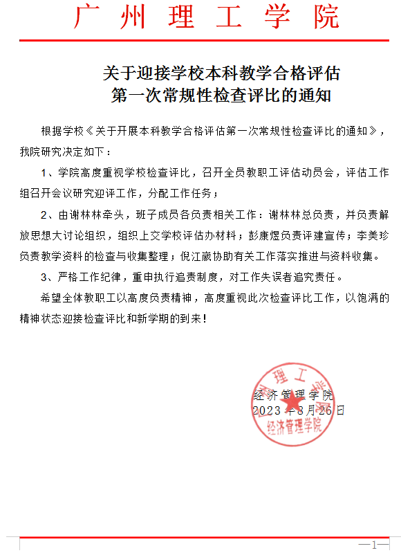 关于迎接学校本科教学合格评估第一次常规性检查评比的通知
