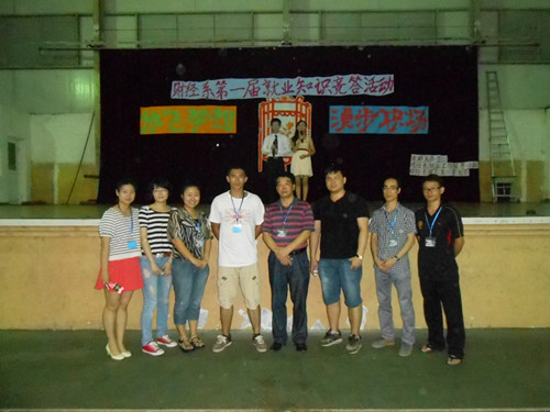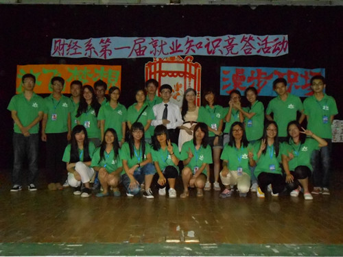大学生就业问题是社会各界关注的热点话题,同学们走出大学校门后是否能在激烈的竞争中立于不败之地,适应社会发展的需要,是每个大学生必须面对和提前做好准备的。为了加强学生对经济环境和就业形势的重视,全面了解和增强对就业知识的学习,调整自己的就业目标,做好职业规划,5月29日,财经系就业工作领导小组及学生会在体育馆举行《财经系第一届就业知识竟答有奖竞赛活动》。党总支书记李伟民、系办主任刘亮、就业干事许就平及全体辅导员,财经系各年纪学生300多人财经了本次活动。