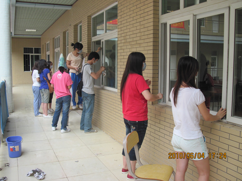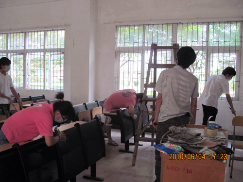 由于兄弟班级证劵投资091班去增城参加英语实训,我班也分出一组同学帮助他们打扫课室。