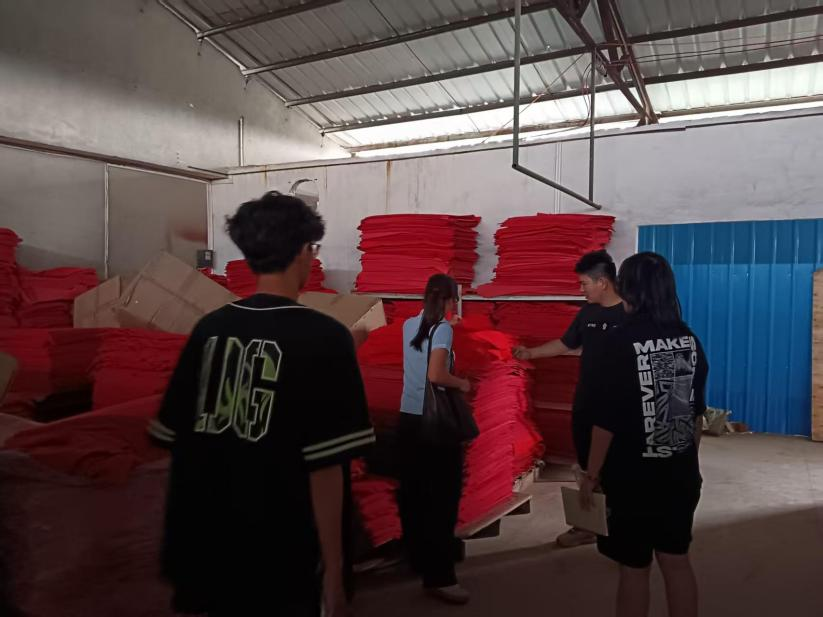 叶赛老师结合工厂实际,详细讲解门福、对联等产品生产步骤。学生们认真聆听,仔细观察生产工序,就关键细节与老师深入探讨。团队发现,降本增效是企业当前面临的核心难题,其直接影响其市场竞争力与可持续发展,亟待深入研究解决。