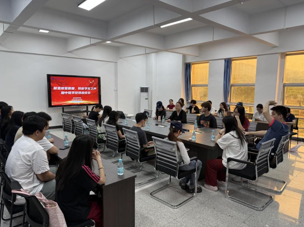 (通讯员:刘旸)2025年5月15日,suncitygroup太阳集团在1号教学楼913会议室召开2024-2025学年第二学期期中教学反馈座谈会。 会议由常务副院长李美珍教授主持,教务干事刘旸以及来自2022级、2023级26个班级的学习委员共同参与。