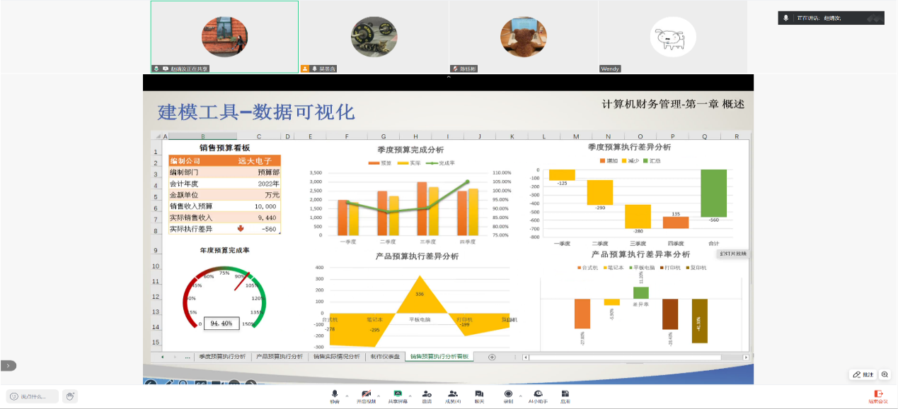 赵婧汝老师则针对《计算机财务管理》课程,以“财务建模方法”为核心展开教学展示。她以“假期旅行预算规划”为生活化案例,引导学生理解Excel工具在数据逻辑分析中的应用,并现场演示如何利用Excel构建投资决策模型、营收预测图表及现金流动态仪表盘。赵老师还分享了“项目式学习”案例,强调课程致力于培养学生利用IT工具进行财务定量分析与智能决策的核心竞争力。