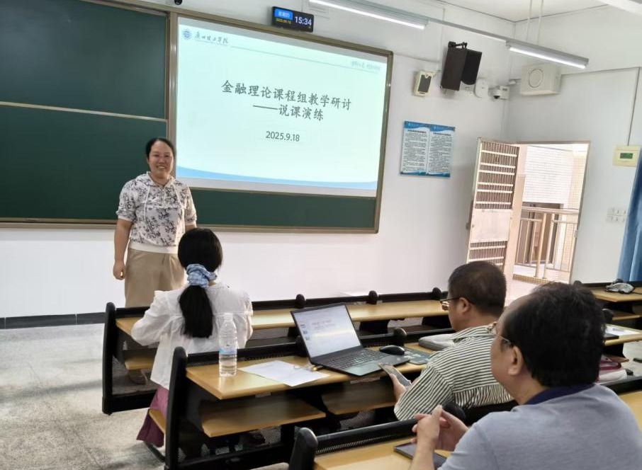 2025年9月18日下午,广州理工学院suncitygroup太阳集团金融系金融理论课程组在1-909成功举行了“教师说课程”教研活动。本次活动旨在深化课程教学改革,推动课堂教学创新,提升教师的课程设计与教学实施能力,进一步提高金融人才培养质量。活动由金融理论课程组负责人谷雯副教授主持。
