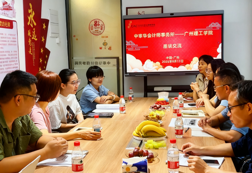 (供稿人:秦海芳)为深化产教融合、加强校外实践基地建设,推动应用型人才培养与行业需求对接、助力毕业生高质量就业,2025年9月12日,广州理工学院suncitygroup太阳集团副院长陈少英副教授率队赴中审华会计师事务所开展实地交流调研,会计系主任朱文翰博士、主任助理左丹审计师及实验员陈树洁、课程组负责人秦海芳同行。中审华会计师事务所热烈欢迎,副所长林彤、质量控制负责人熊辉及项目经理李艳、劳秋怡、叶春敏等出席交流会议。