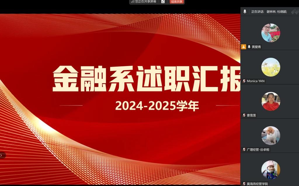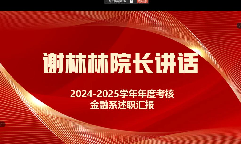 为全面总结2024-2025学年师德建设、教学、科研及学科竞赛指导等工作成效,客观评价教师履职表现,根据学校和学院年度考核工作统一部署,金融系评议小组于2025年11月14日下午通过线上会议成功召开了2024-2025学年年度述职大会。评议小组成员包括原金融系主任黄爱青、院长谢林林、常务副院长李美珍,负责对述职情况进行综合评议,金融系共有29位教师参与述职。