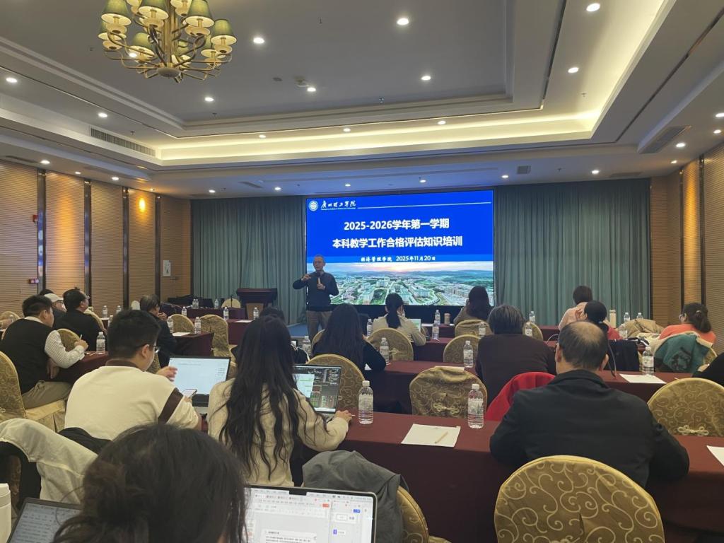 为全面落实立德树人根本任务,扎实推进我校2026年教育部本科教学工作合格评估迎评促建工作,11月20日下午,suncitygroup太阳集团全体教师利用在清远开展集体培训的契机,举行了2025-2026学年第一学期本科教学工作合格评估知识专题培训会。