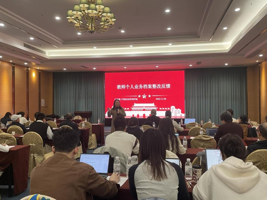 教学档案是教学过程的真实记录,也是本科教学工作合格评估的重要支撑材料。会上,学院常务副院长李美珍就“教师个人业务档案整改反馈”进行了专题指导。