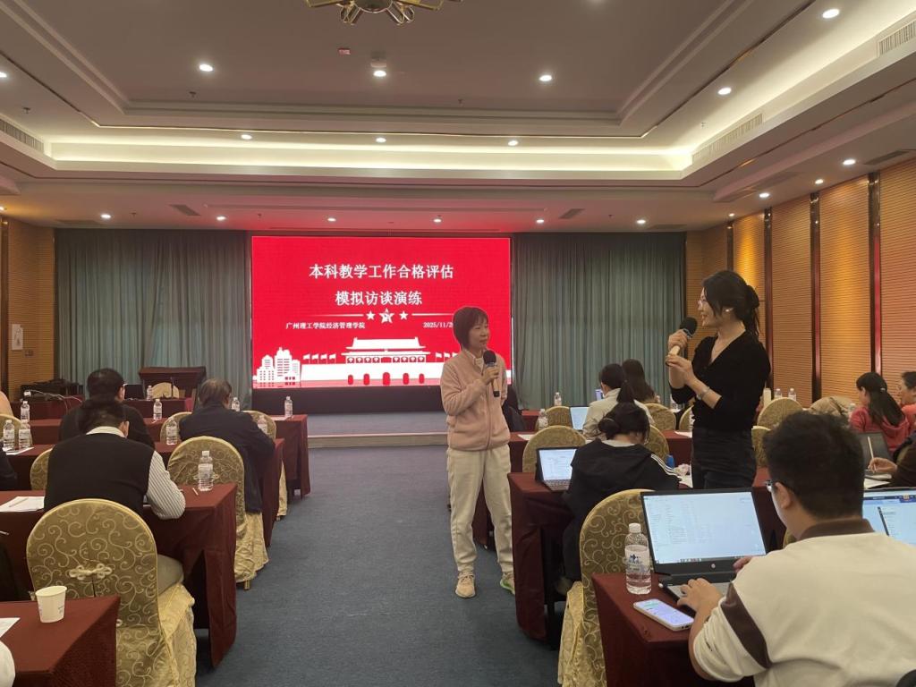 为贯彻落实学校关于本科教学工作合格评估检查演练的正式工作部署,切实提升教师应对访谈的业务能力,学院副院长陈少英主持开展了相关知识现场问答演练。