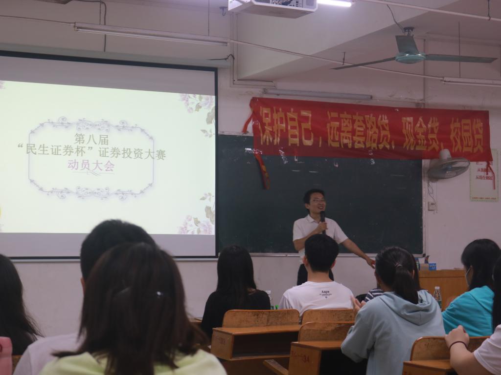 (通讯员 陈天勇)11月18日晚,第八届“民生证券杯”证券投资大赛动员会暨证券基础知识讲座在7-518顺利举行。民生证券广州营业部高级投资顾问赵栩龙、投资顾问林耿芳、彭嘉泳;副院长陈天勇出席会议。