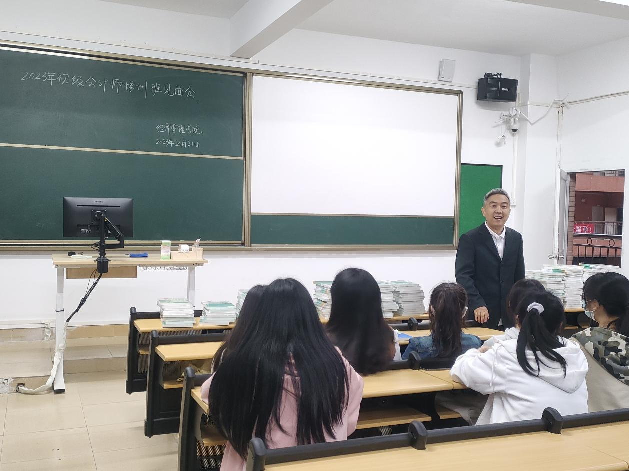最后,班主任林老师与同学们共同选举出培训班的班长,并为每位同学发放了学院准备的《初级会计实务》、《经济法基础》两本教材及课程安排表。会议在同学们的热烈讨论中圆满结束。