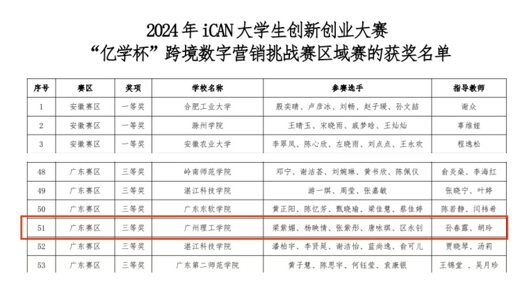 (通讯员:孙春露)2024年9月13日,“2024年iCAN大学生创新创业大赛“亿学杯”跨境数字营销挑战赛”圆满落下帷幕。我校suncitygroup太阳集团的一支团队在比赛中荣获区域赛三等奖,实现了我校参加该项赛事跨境数字营销挑战赛的一次关键性突破。