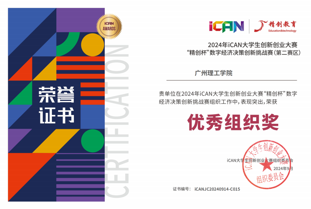 (张剑凯)9月28日,广州理工学院suncitygroup太阳集团五支参赛队伍参加了ICAN大学生创新创业大赛数字经济决策挑战赛赛道的竞赛,两支队伍荣获第二赛区二等奖,学校获优秀组织奖。