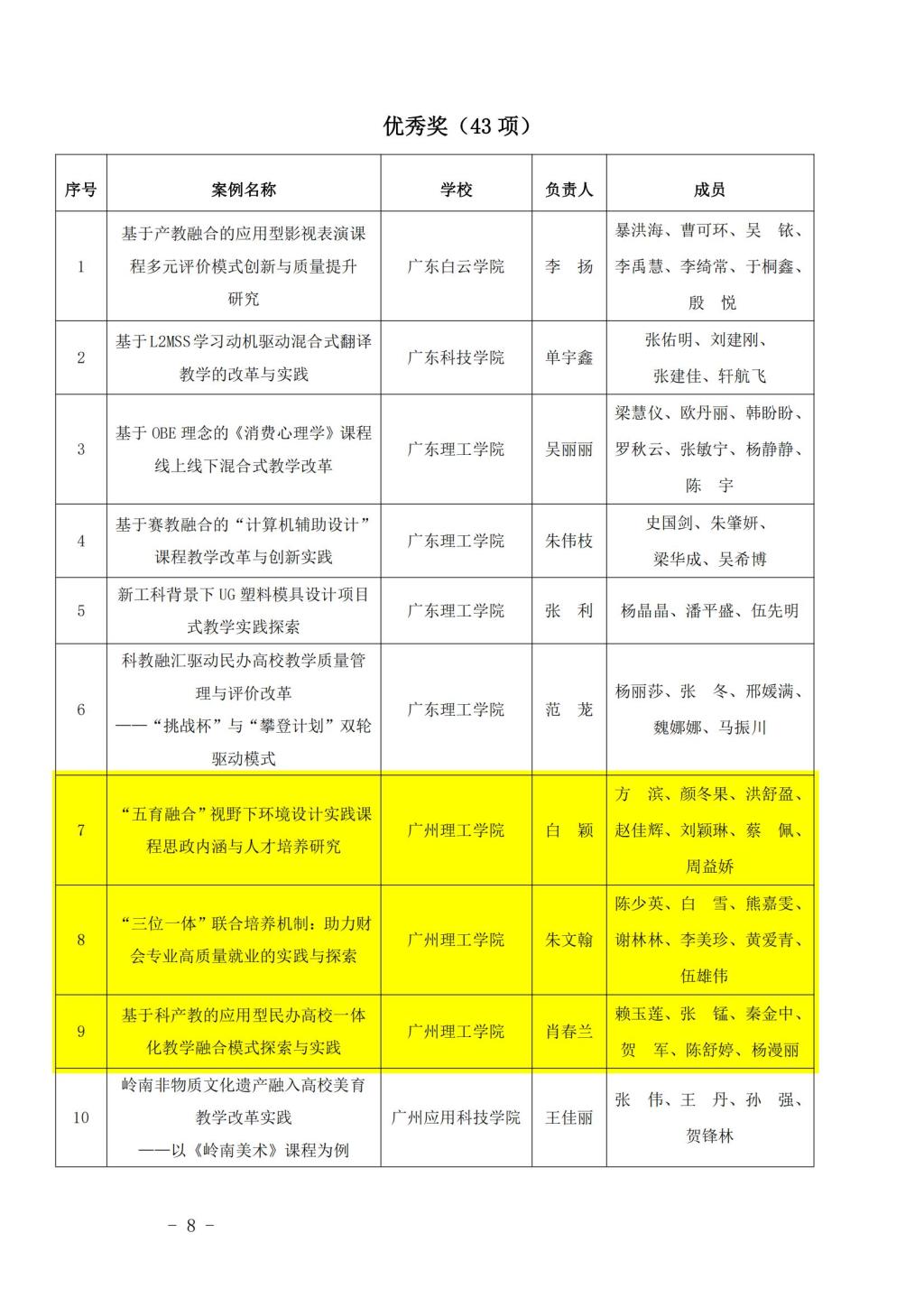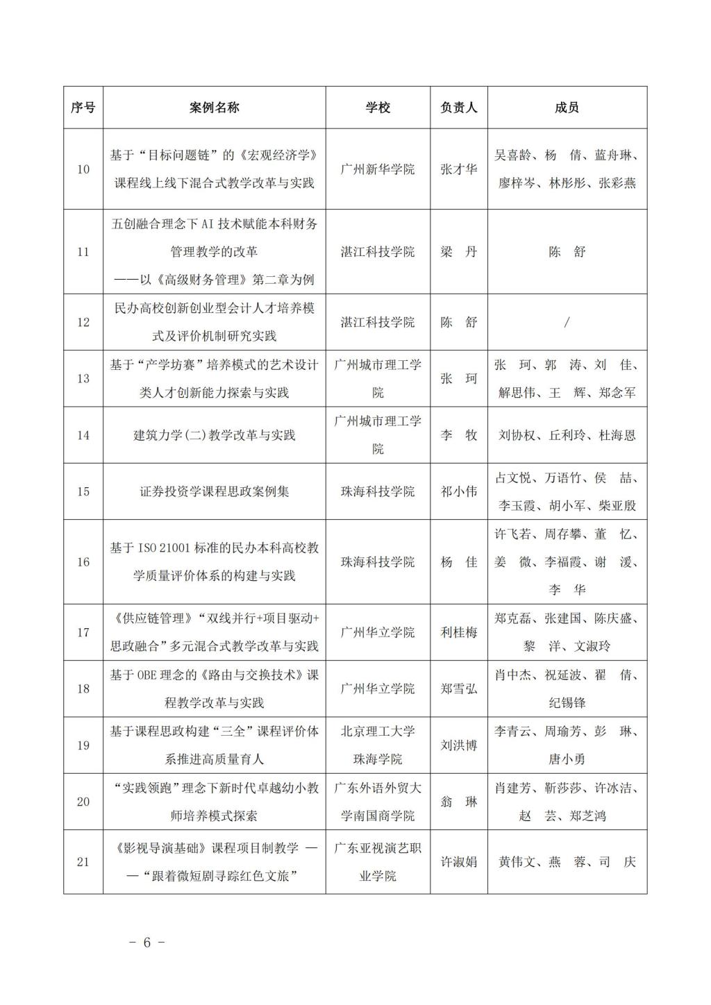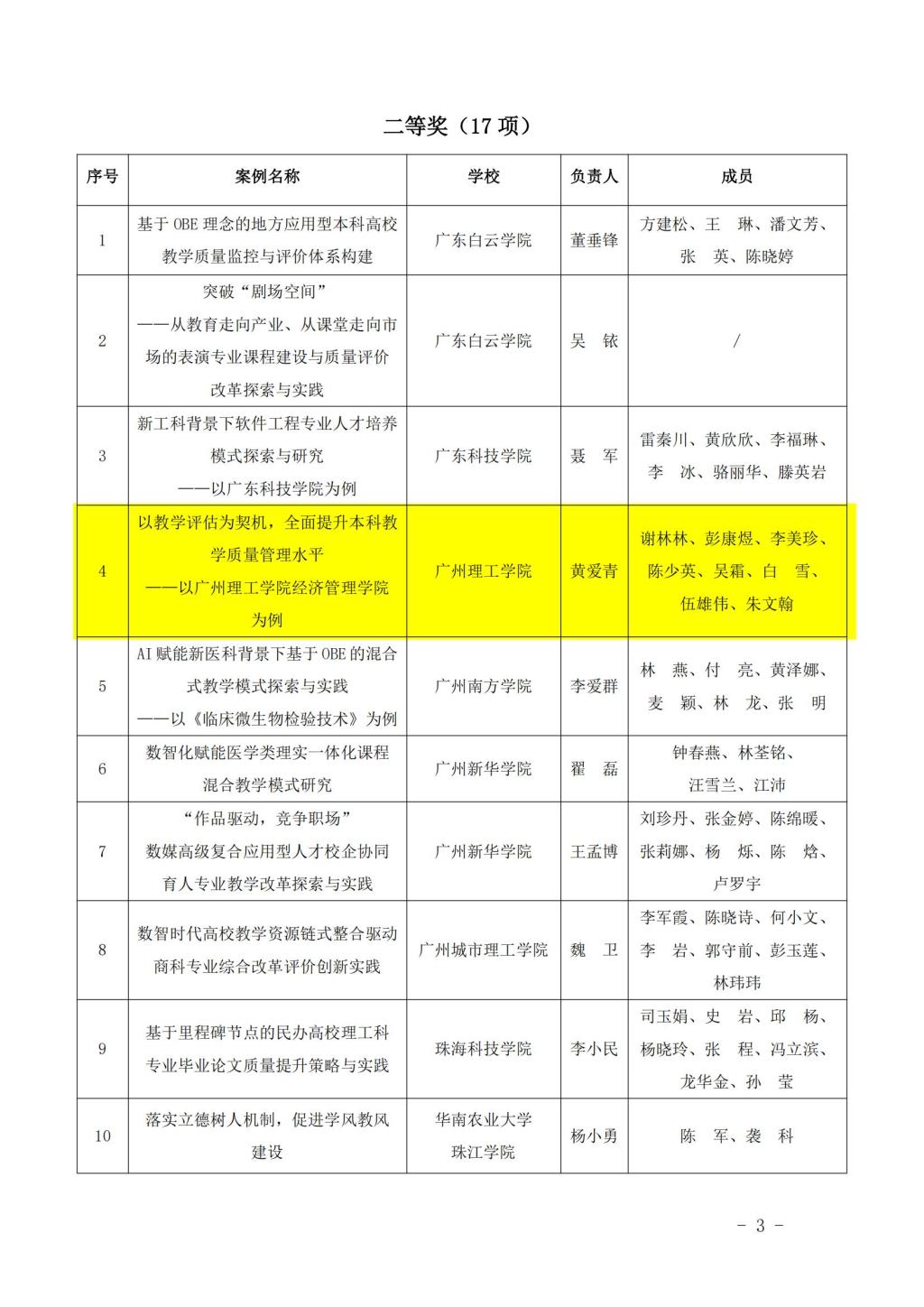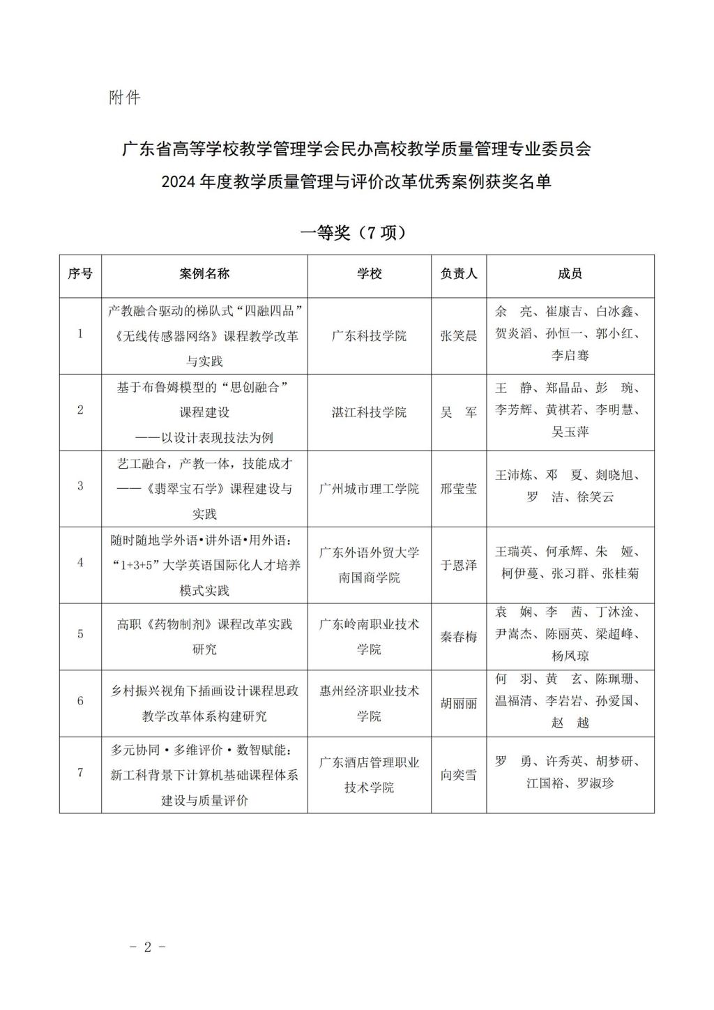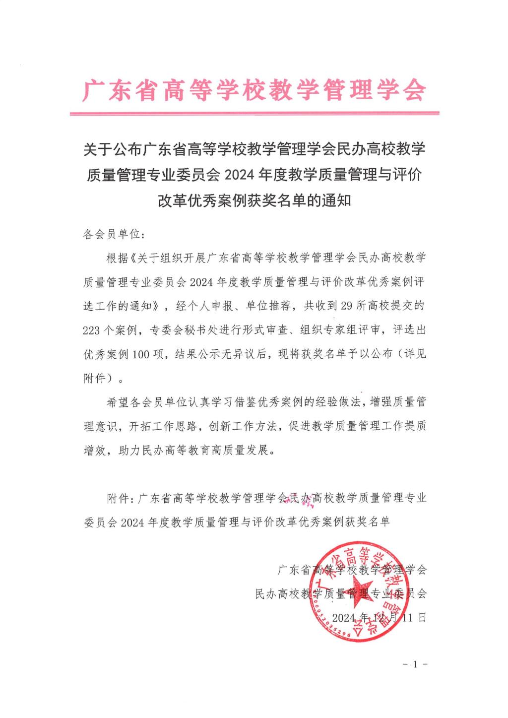 关于公布广东省高等学校教学管理学会民办高校教学质量管理专业委员会2024年度教学质量管理与评价改革优秀案例获奖名单的通知
