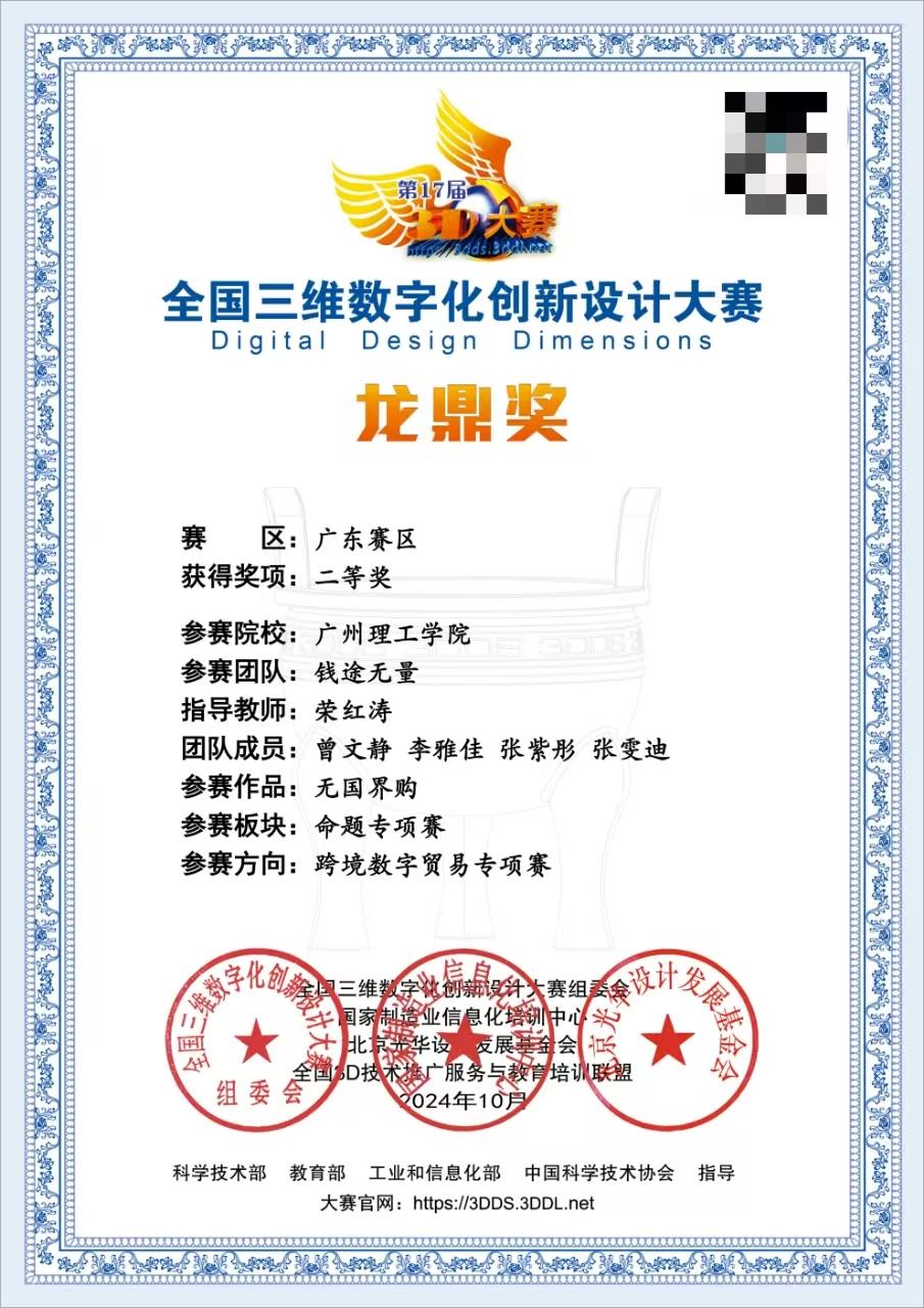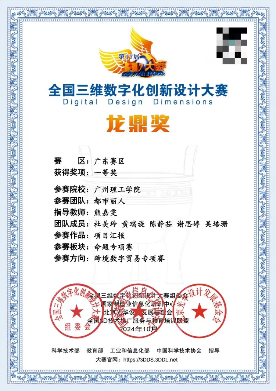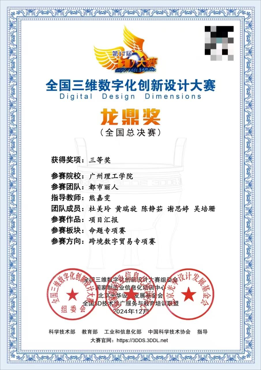 在数字化浪潮和全球化背景下,跨境数字贸易正成为推动全球经济发展的新引擎。在此背景下,2024全国三维数字化创新设计大赛跨境数字贸易专项赛全国总决赛宇2024年12月在四川大学成功举办。广州理工学院suncitygroup太阳集团学生团队在全国三维数字化创新设计大赛跨境数字贸易专项赛中荣获全国三等奖、省级一等奖等多项奖!这一成就不仅是对学生们努力和才华的认可,也是对suncitygroup太阳集团教育质量和实践教学能力的有力证明。