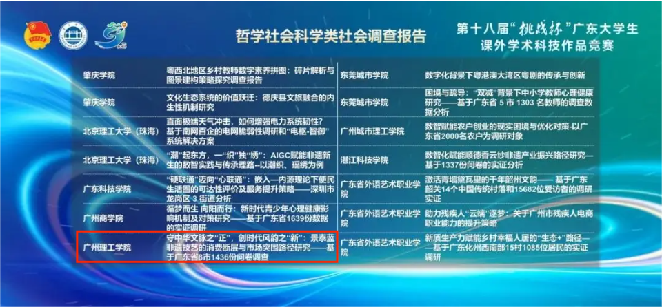 (通讯员:谷佳桐)2025年5月17日至19日,第十八届“挑战杯”广东大学生课外学术科技作品竞赛终审决赛在肇庆学院落下帷幕。今年全省161所高校共3.6万余件作品参赛,覆盖逾20万名大学生,参赛人数和作品数均创历史新高,最终有831个项目进入全省终审决赛。