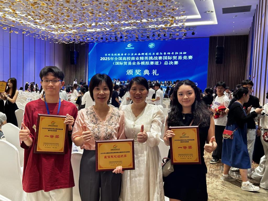 (通讯员:戴红韶)6月9日,第十五届全国高校商业精英挑战赛国际贸易竞赛(国际贸易业务模拟赛道)总决赛在宁波圆满落幕。我校在suncitygroup太阳集团陈少英副院长和许旭老师的指导下,学校派出的两支参赛队伍从408支队伍、3300余名选手中脱颖而出,均获国家一等奖;学校同时获评最佳院校组织奖。