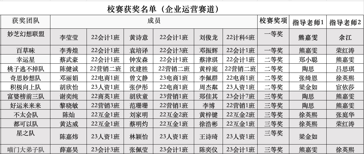 企业运营赛道校赛获奖名单