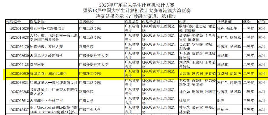 (通讯员:谷卓桐)2025年广东省大学生计算机设计大赛暨第18届中国大学生计算机设计大赛粤港澳大湾区赛圆满落幕。我校来自人工智能学院22大数据2班吴云锋、艺术设计学院23数媒艺术7班冯志洲、人文与教育学院23中文3班陈春媚三位同学组成的跨学院团队,在suncitygroup太阳集团谷卓桐老师、艺术设计学院刘延华老师的悉心指导下,从全省139所院校6369件作品中脱颖而出,成功斩获省赛二等奖。