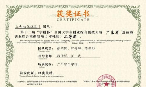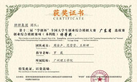 创业综合模拟赛项中,在郭仕样、罗崴、程一航、邓芷芊四位老师的指导带领下,经过精心准备和刻苦训练,最终,由周金卢、范莹莹、王斯妍同学组成的“胖胖集团”团队荣获省赛特等奖;由陈铮浩、颜丽金、尹乔烽同学组成的“爱对对队”团队和由林鸿兴、林泓江、杨红玉同学组成的“智联2”团队荣获省赛一等奖;由张剑凯、钟梅琳、陈颖彤同学组成的“立大功汪汪队1”团队荣获省赛二等奖。