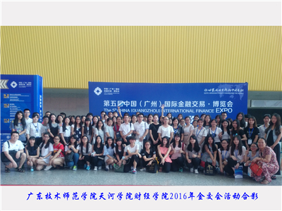 6月24日下午,我院200多名学生在副院长陈天勇、经济学系谷雯、高桦及实验中心副主任张建龙四位老师的带领下参加了第五届中国(广州)国际金融交易·博览会(简称“金交会”),主要组织学生参加了“跨境投融资研讨会”、“金融人才招聘专场活动”、“众创空间投融资路演”及现场展览、交流、交易活动。